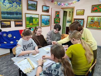 В Детской художественной школе в рамках новогодней кампании 2026 года  Большие сибирские каникулы  «Мастерская Деда Мороза»  прошел мастер-класс «Новогодняя снежинка».  Под руководством преподавателя школы Натальи Николаевны Емельяновой дети сделали  новогоднее украшение на ёлку – Снежинку из соломки. На первый взгляд казалось, что выполнить задание не сложно, но детям пришлось набраться терпения, так как работа с соломкой требует внимания и трудолюбия. В итоге у всех получились, красивые, необычные, воздушные Снежинки, которые украсят новогоднюю ёлку дома.